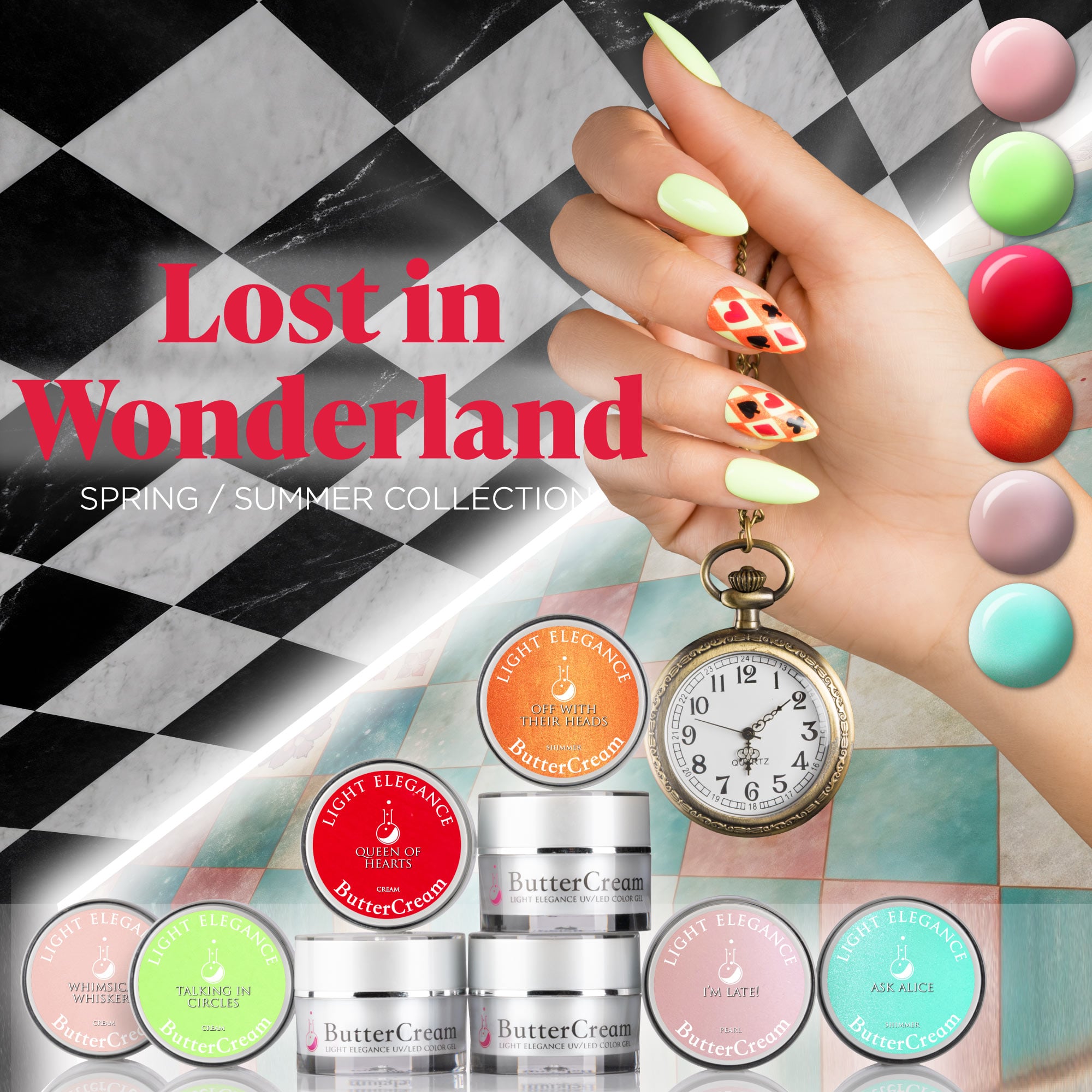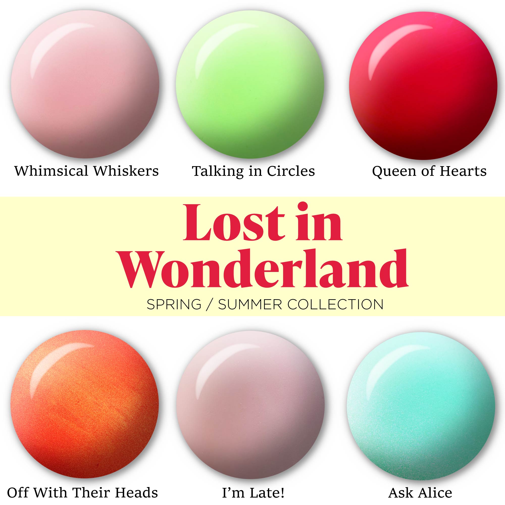 Fargene og glitteret er perfekte enten de brukes som effektfulle accentfarger eller som et harmonisk supplement til vårens og sommerens garderobe. Lost in Wonderland er kolleksjonen for deg som ønsker å skape inspirerende, kreative og sofistikert negledesign – og gi dine kunder noe helt ekstra.