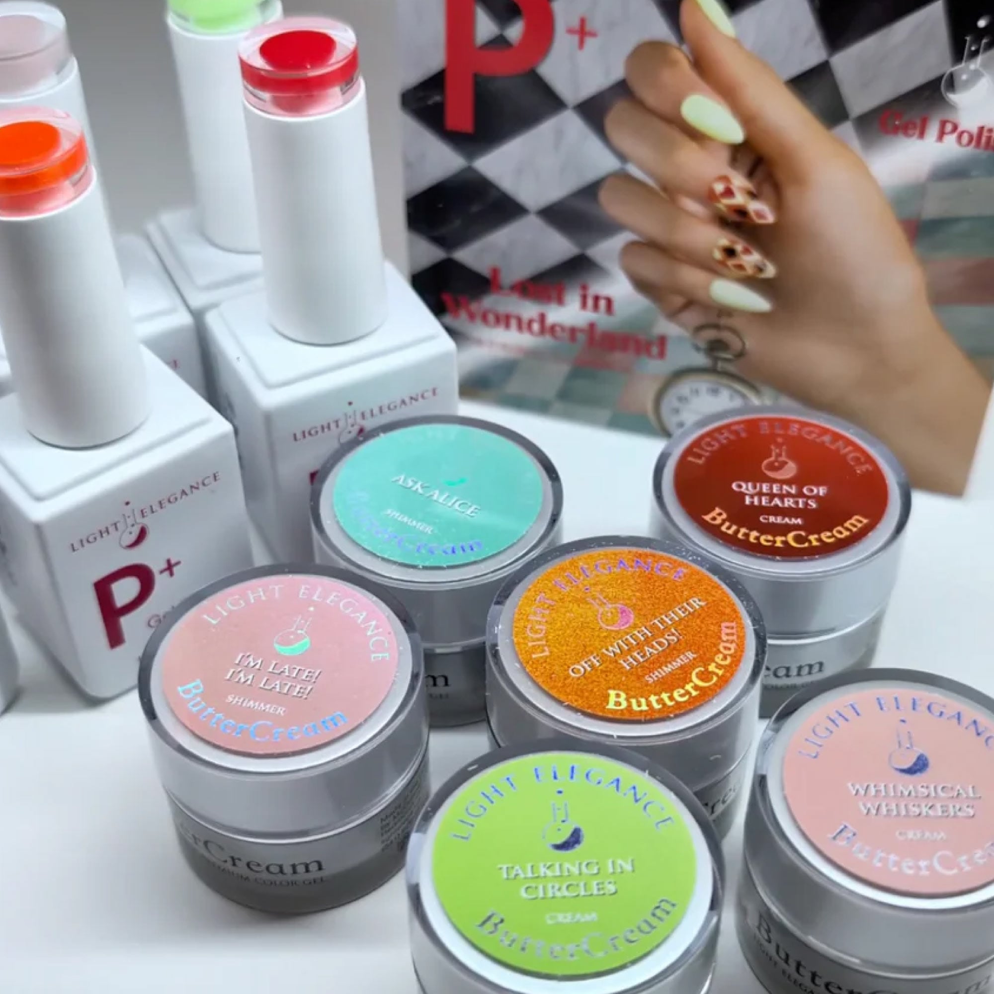 Denne gangen får du alle seks fargene i LE ButterCream og P+ Gel Polish. Dette gir deg muligheten til å enkelt fullføre enhver behandling uansett foretrukken teknikk og kundes behov.