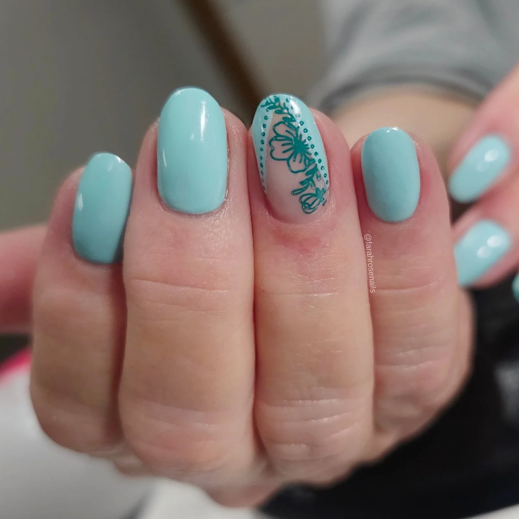 Farge: En frisk, lys turkis med delikat skimmer som fanger oppmerksomheten og gir et elegant uttrykk.