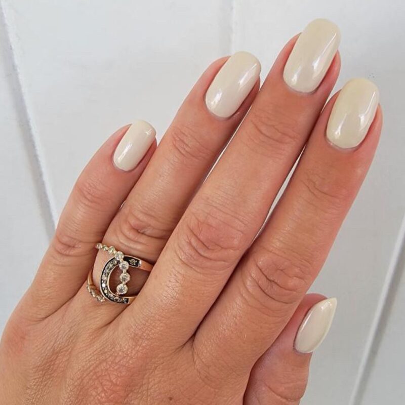 Farge: Den mest luksuriøse havremelkfargen du kan tenke deg. Denne kremaktige beige tonen har et lett perlemorsskimmer som er subtilt, men rikt. Et perfekt nøytralt valg hele året.